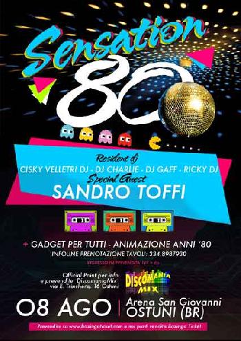 Il party anni '80 più cool dell'estate è in arrivo nella straordinaria cornice dell'Arena San Giovanni di Ostuni (BR). Sabato 8 agosto sarà un incandescente Sensation '80.